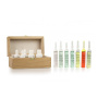 7 ampolas água de toque: Ag, Pt e ouro 9 K, 14 K, 18 K e 19,2 K, 24 K