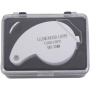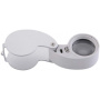 Lupa dobrável em metal e plástico com ampliação de 40 vezes.